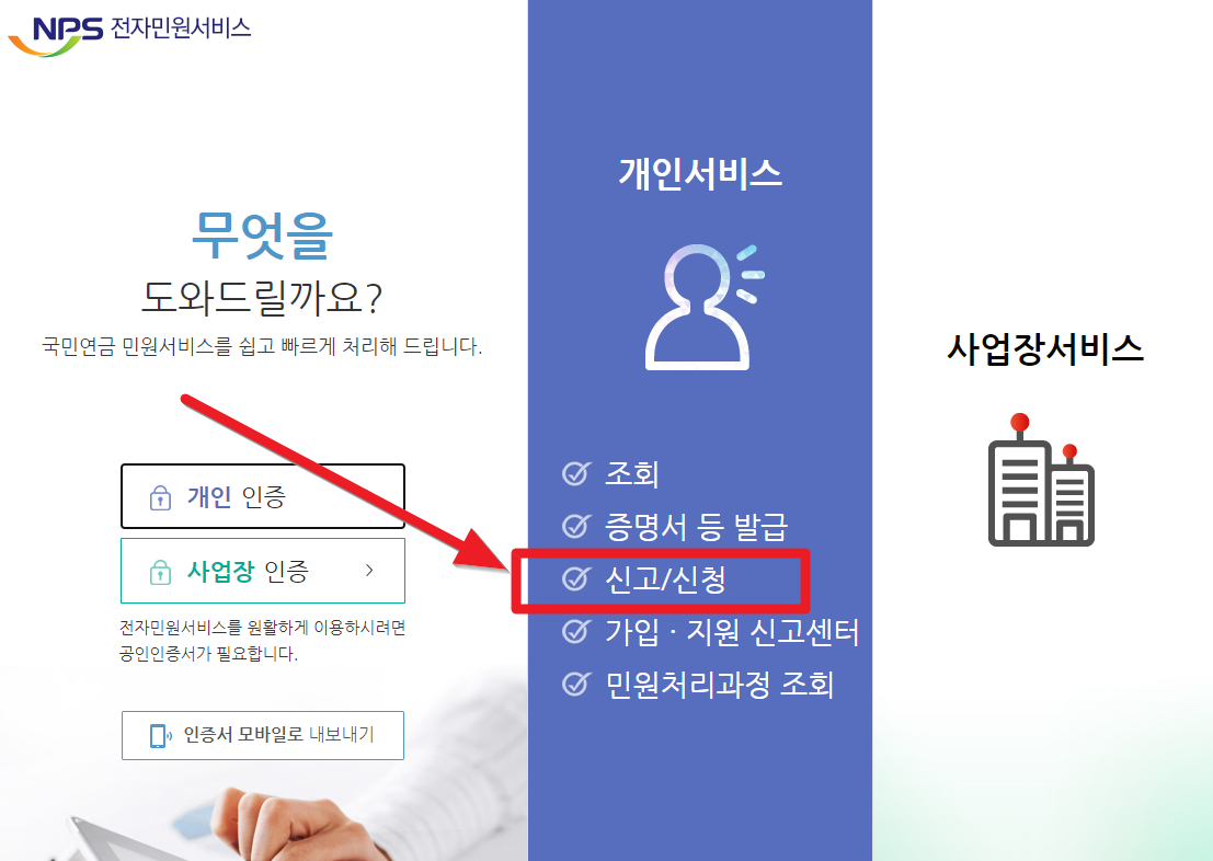 그러면 아래와 같은 화면에서 화살표가 가리키는 "연금급여 청구"를 누릅니다.