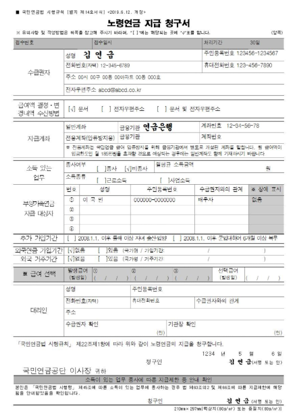 조기노령연금청구서 양식은 노령연급지급청구서 서식과 동일한 서식을 사용합니다.