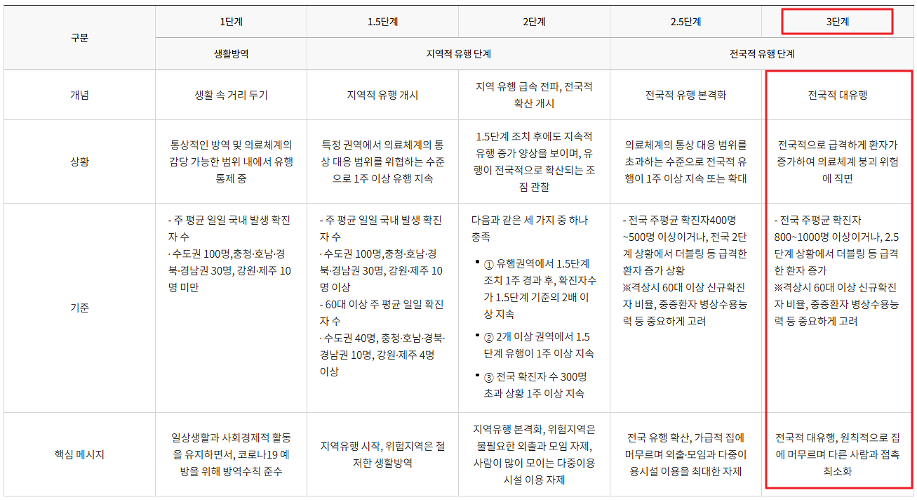 코로나 3단계 기준
