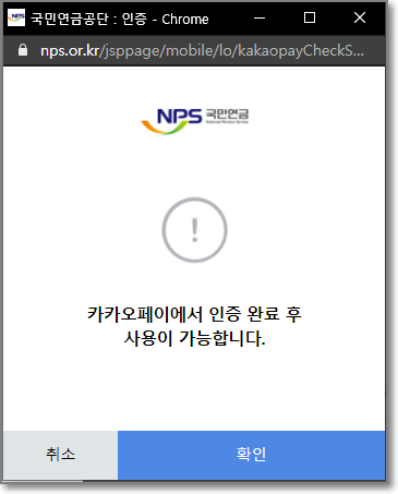 아래처럼 카카오페이에서 인증 완료 후 사용이 가능하다고 나옵니다.