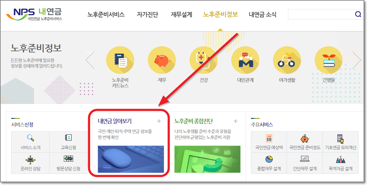 아래와 같은 화면에서 "내연금 알아보기"를 누릅니다.