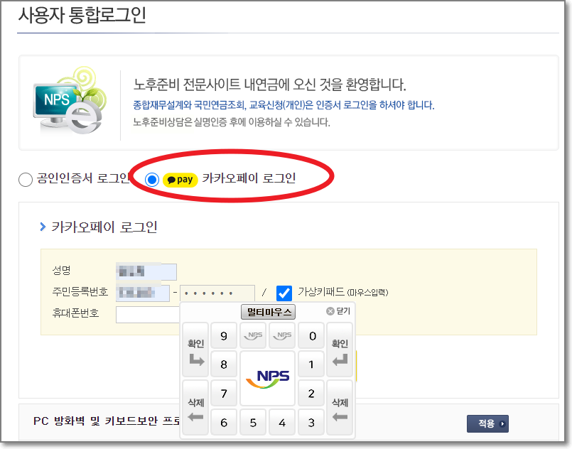 공인인증서가 있으시다면 공인인증서 로그인을 하시고요. 혹시라도 없다면 카카오페이 로그인을 해보시기 바랍니다.