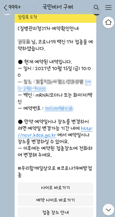 예약번호는 국민비서 구삐를 신청했을 경우 카카오톡으로 쉽게 받아볼 수 있습니다.