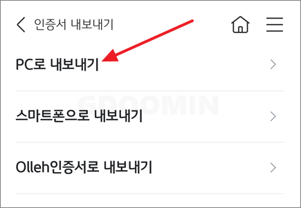 스마트폰에 발급받은 공동인증서를 PC,이동식디스크로 옮기기