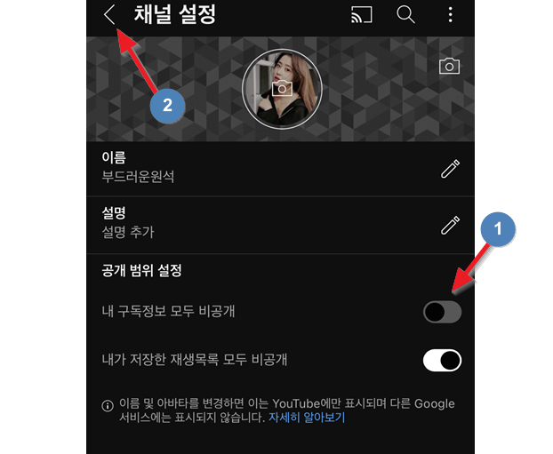 유튜브 구독정보 공개 설정 하는 법(모바일)