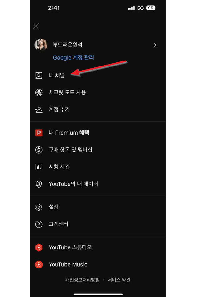 2. 프로필 화면에서 '내 채널'를 선택합니다.