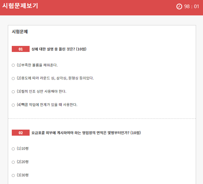15. 3가지 이상 미용서비스를 제공하는 경우 최종요금 내역서 보관 기간으로 맞는 것은 (10점)