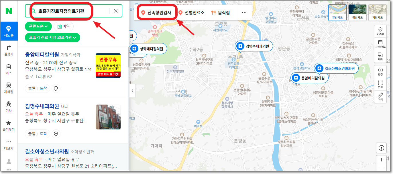3. 호흡기진료지정의료기관 또는 신속항원검사 검색하기