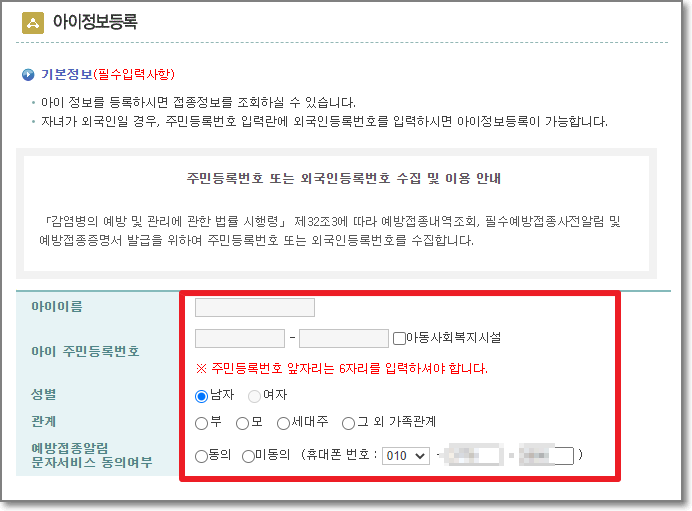 아래처럼 아이정보등록을 오늘 새로 하더라도 과거 아이의 예방접종 내역을 보실 수 있으니 꼭 등록해서 보세요.