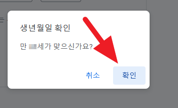 생년에 맞는 나이를 확인합니다. "확인"을 누릅니다.