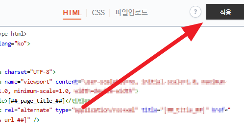 아래처럼 </head>위에 코드가 잘 들어있는 반드시 확인해주시고 안들어있으면 붙여넣기를 다시 하고 "적용", "새로고침" 까지 해주세요.