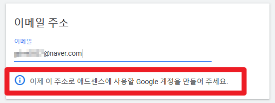 만약에 네이버 이메일 주소를 넣으면 아래처럼 나옵니다. 꼭 구글 이메일로 하세요.