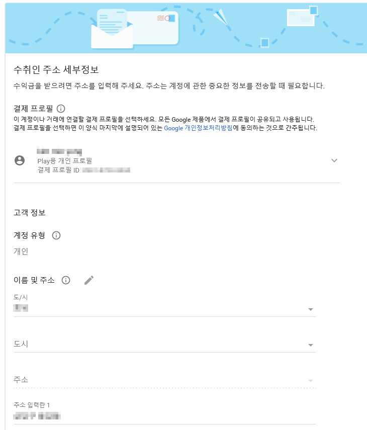 중요한 사항입니다. 수익이 생겼을 때 수취인 주소 거든요. 꼼꼼하게 입력합니다.