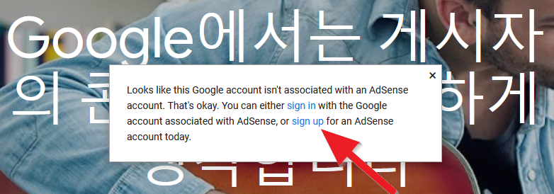링크한 구글 애드센스로 들어갑니다. 화면 우측상단에 있는 "로그인"을 누릅니다.