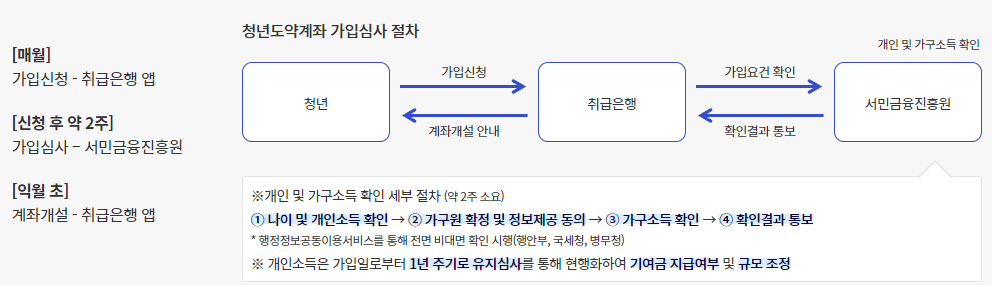 청년도약계좌 가입요건 충족여부 확인 절차는 아래와 같습니다.