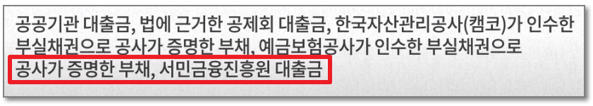 ▶ 공공기관이나 국가기관에 부채가 있는 경우 "부채를 입증할 수 있는 서류" 필요 ※ 금융기관은 조회가 가능하지만, 공공기관이나 국가기관은 서류가 필요합니다.