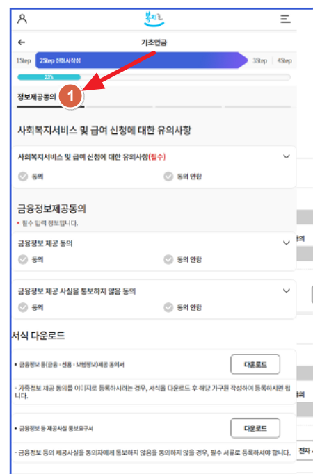 정보제공동의를 하고 다음으로 넘어갑니다.