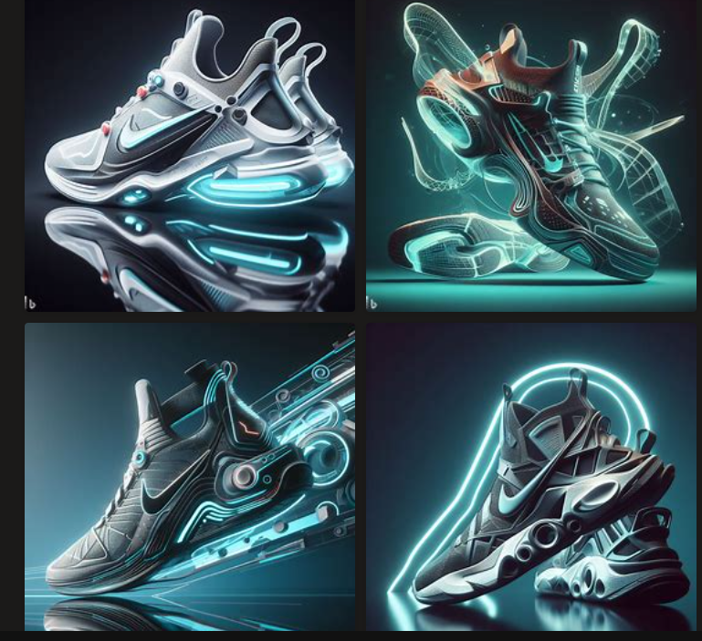 이번에는 futuristic nike sneaker, digital art, 3d render 라고 입력해보겠습니다. 결과물이 그럴싸하죠?