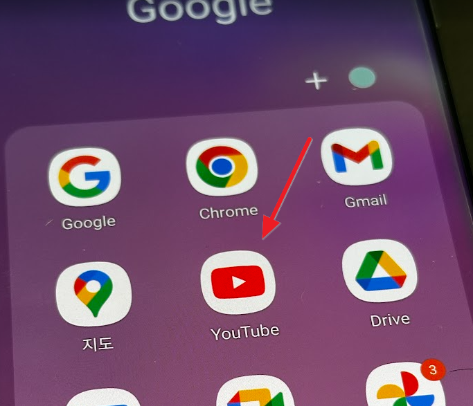 스마트폰에 있는 Google 폴더의 유튜브 앱을 실행합니다.