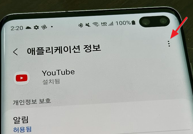 4. 애플리케이션 정보 오른쪽의 점세개를 누릅니다.