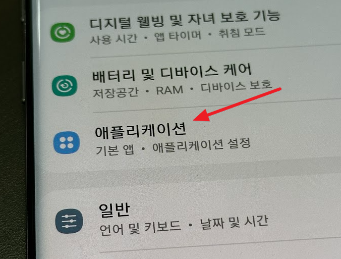 2. 화면을 쭉 내려서 '애플리케이션' 항목으로 들어갑니다.