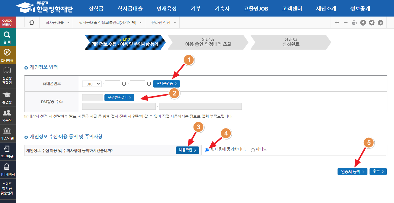 1. 홈페이지 접속 > 학자금대출 > 학자금대출 신용회복관리 > 외부 연계 신용회복지원제도