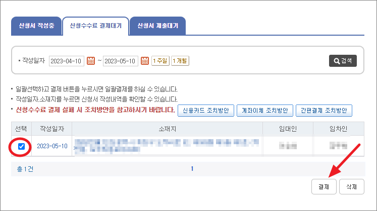 5. 확정일자 부여신청 수수료 결제하기