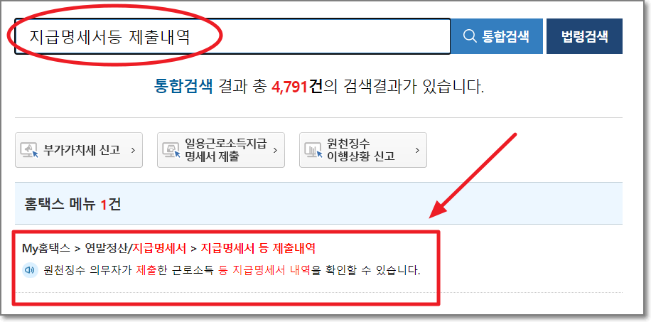 2. '지급명세서등 제출내역' 검색