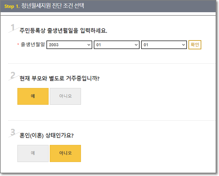 * 부모와 떨어져서 월세로 살고 있어야 하며, 부모님 명의의 집에 월세로 사는 경우는 해당되지 않습니다.