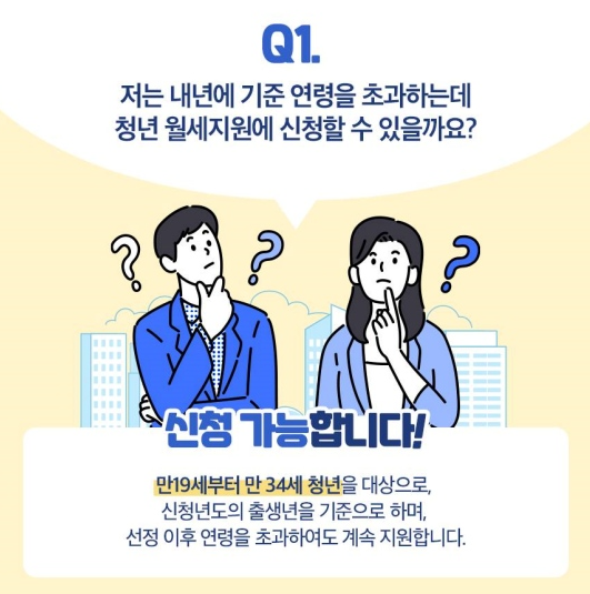 Q1. 저는 내년에 기준 연령을 초과하는데 청년 월세 지원에 신청할 수 있을까요?