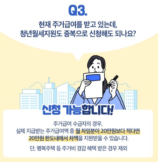 Q3. 현재 주거급여를 받고 있는데, 청년 월세 지원도 중복으로 신청해도 되나요?