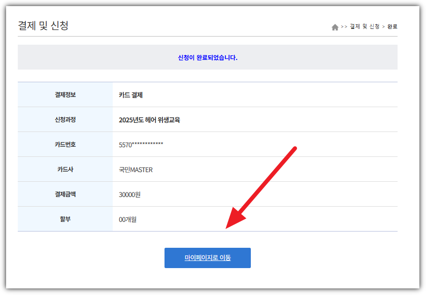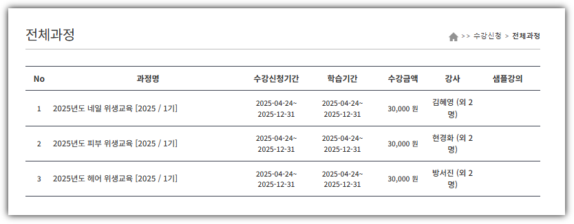 전체과정 중에서 해당 위생교육을 선택하시면 됩니다. 여기서는 헤어 위생교육을 선택하여 진행하겠습니다.