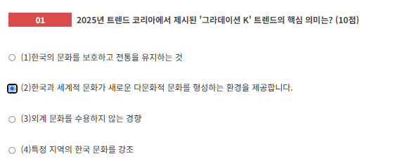 👉. 2025년 트렌드 코리아에서 제시된 ‘그라데이션 K’ 트렌드의 핵심 의미는? (10점)