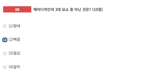 👉 헤어디자인의 3대 요소 중 아닌 것은? (10점)