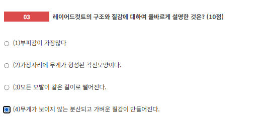 👉 레이어드컷트의 구조와 질감에 대하여 올바르게 설명한 것은? (10점)