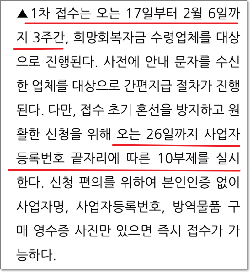 단, 1차는 희망회복 자금 받으신분들만 신청이 가능하며 사업자 끝자리로 10부제를 실시합니다. 2차는 아래글 참고해주세요.