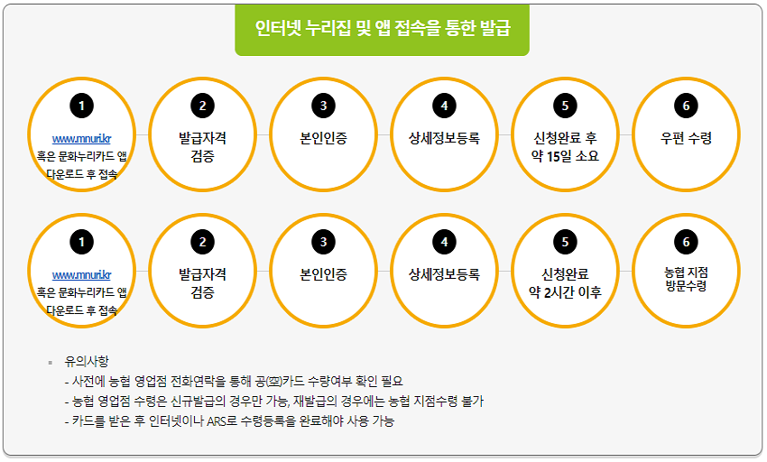 신청방법은 주민센터를 통한 발급과 문화누리 홈페이지를 통한 발급이 가능합니다.