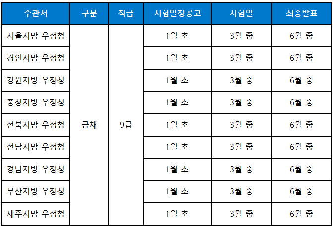 ⑥ 2021 계리직(우정9급) 공무원 시험일정