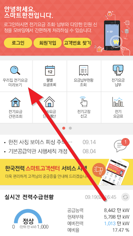 차라리 바로 "우리집 전기요금 미리보기"를 누릅니다.