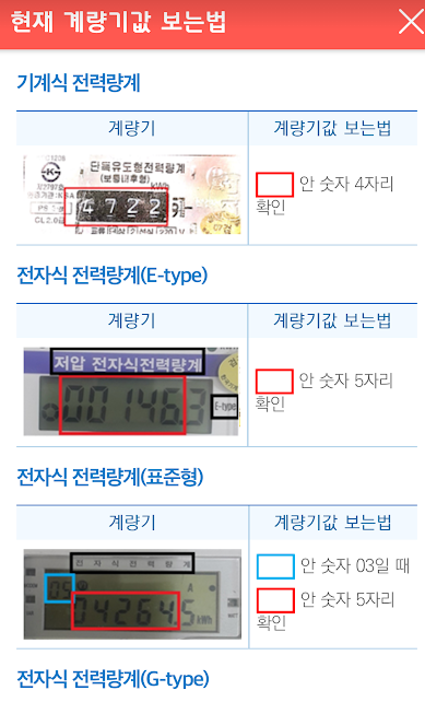 계량기 보는법이 헷갈리시면 바로 앱 화면에서 계량기보는법(바로가기)를 누르시면 되지만, 제가 캡쳐해서 밑에 보여드리겠습니다.