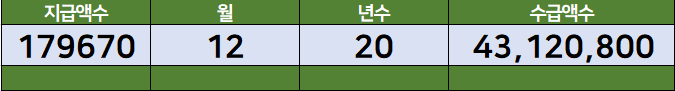 20년을 지급받게 되면 43,120,800원이 됩니다. (이때 나이는 85세 입니다.)