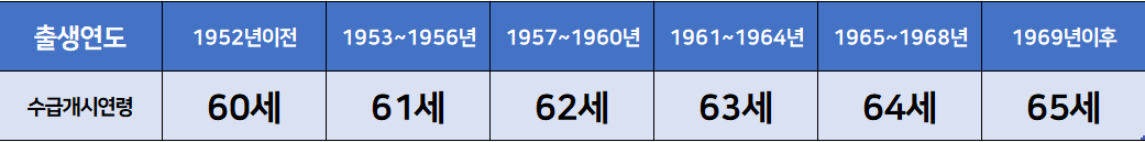 출생연도별 국민연금 수급개시 연령