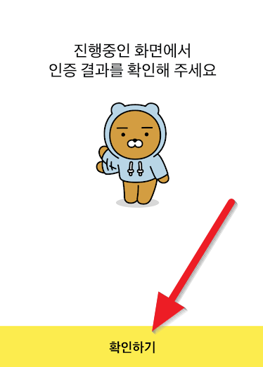 그러면 스마트폰을 꺼내서 카카오톡을 보면 아래처럼 카카오페이로 인증할 수 있게 됩니다. 확인을 누르시면 인증이 됩니다.
