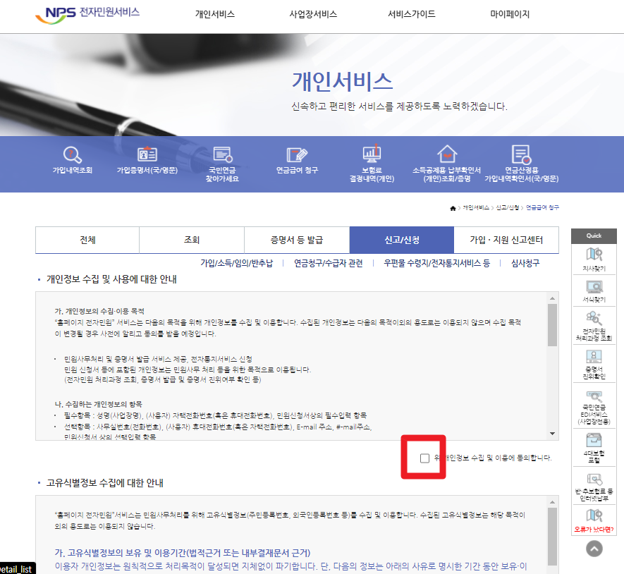 다음 화면에서 개인정보 수집 및 이용에 동의를 체크합니다.