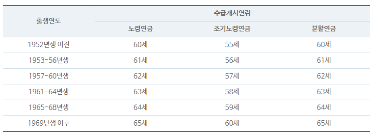 * 55세 70%, 56세 76%, 57세 82%, 58세 88%, 59세 94% 지급(55세 수급연령 개시 기준)