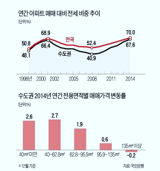 전세 제도가 사라질 것이라고 했던 2015년에도 매매대비 전세비율이 70%가 넘는 경우까지 생겼었습니다.