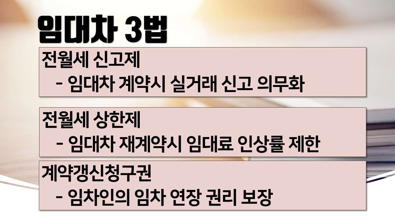임대차3법 즉 임대차보호법 개정안의 주요 내용은 무엇인가?