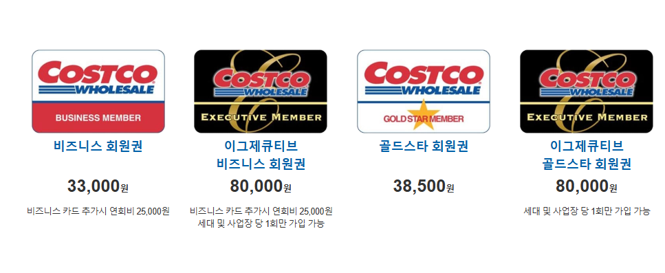 코스트코 회원권 종류 및 가격