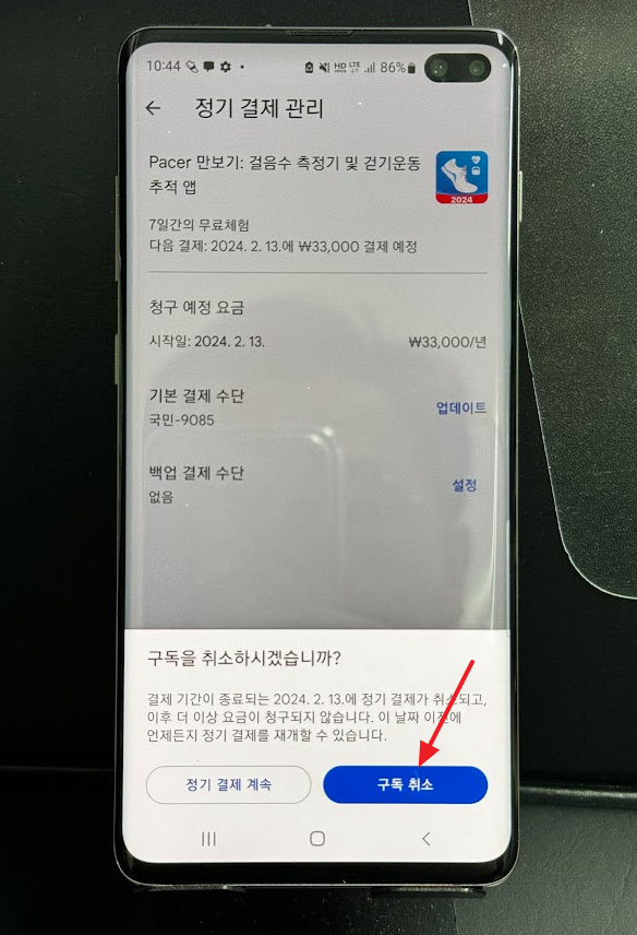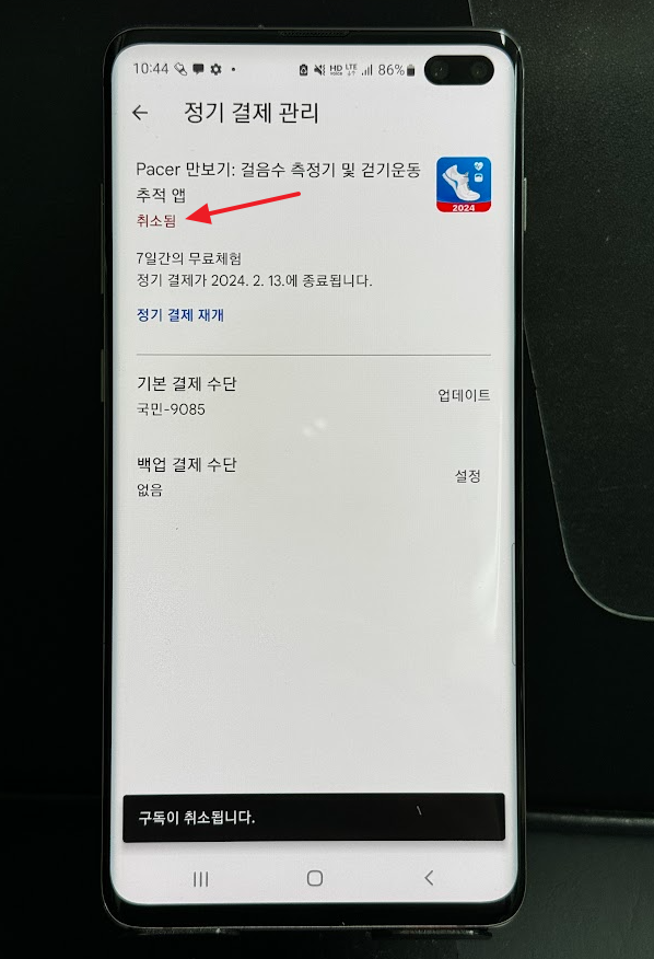 이제 구독이 취소 되었습니다. 반드시 상단에 화살표 친 '취소됨'을 확인하시고 앱을 종료하시기 바랍니다.
