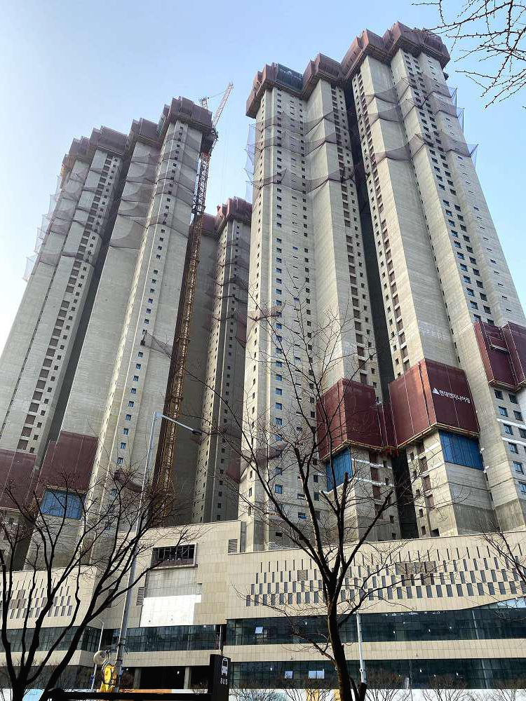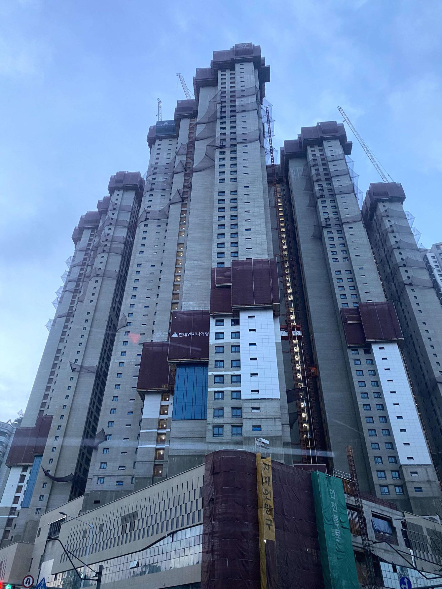 터미널 소풍에서 부천시청 쪽으로 가면 이마트 뒤로 보이는데요. 지어지고 있는 것은 "힐스테이트 중동"이고 뒤에 지어진 것은 푸르지오입니다.